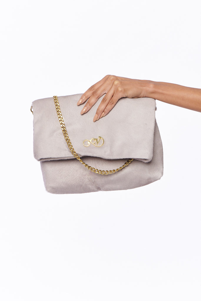 Meet the Jill Jammer, your new statement accessory designed for those who crave luxury with an edge. This fold-over clutch is crafted from plush Pony Skin Natural Leather and rimmed with decadent 100% Silk, giving her a sleek, tactile finish. The gold link chain adds a hint of glam, making it perfect for both day and night looks.