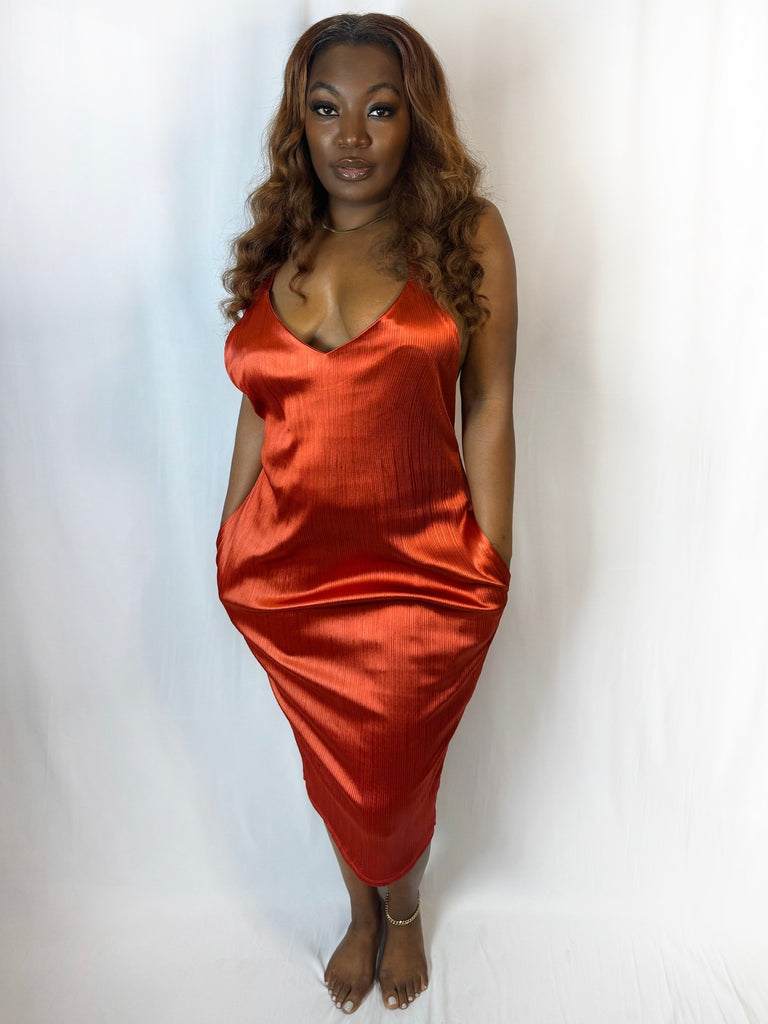 The Jai Dress is sensual seduction that you need in your wardrobe. This versatile dress can be styled as a chic elevated look or feminine athleshiure. With an exaggerated low back, that gives sexy!!! We Crafted this dress from a luxurious pleated satin fabric, it’s the perfect to step out & show out.