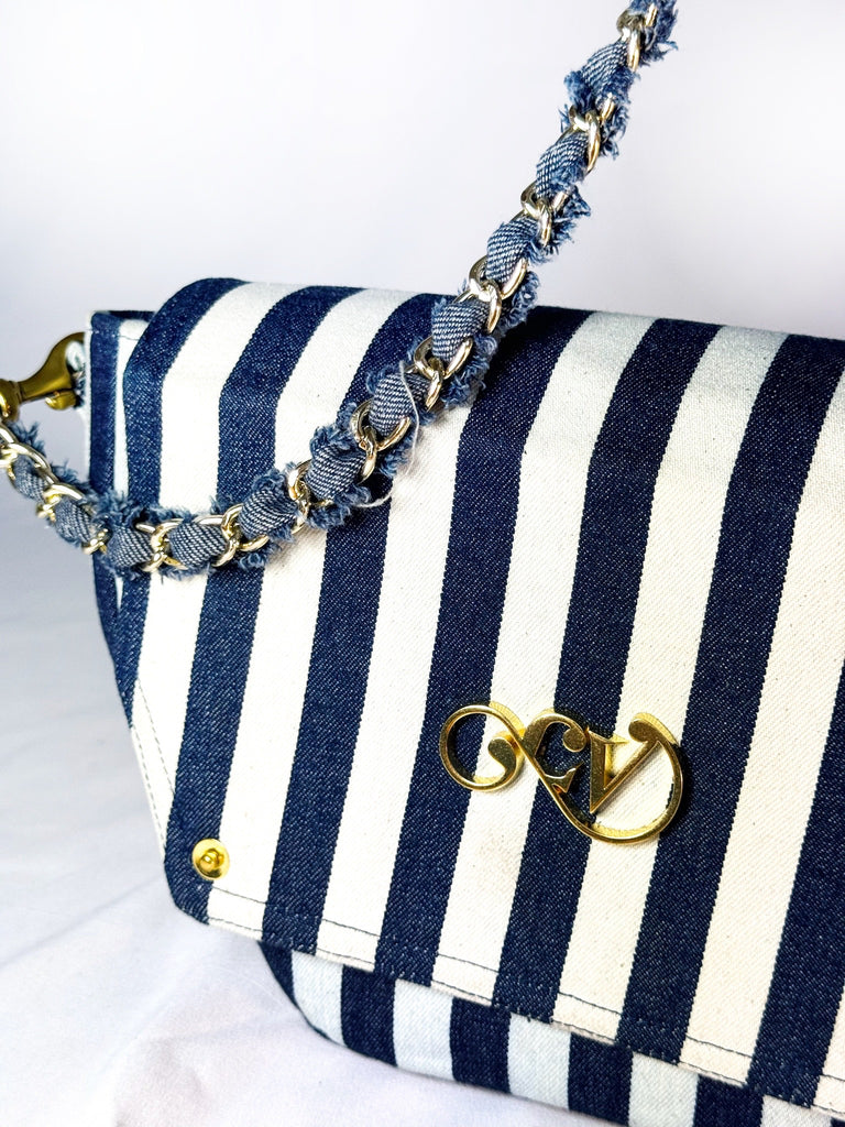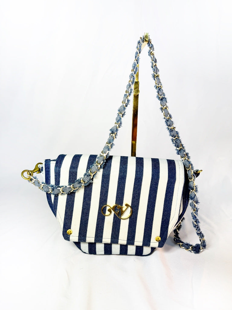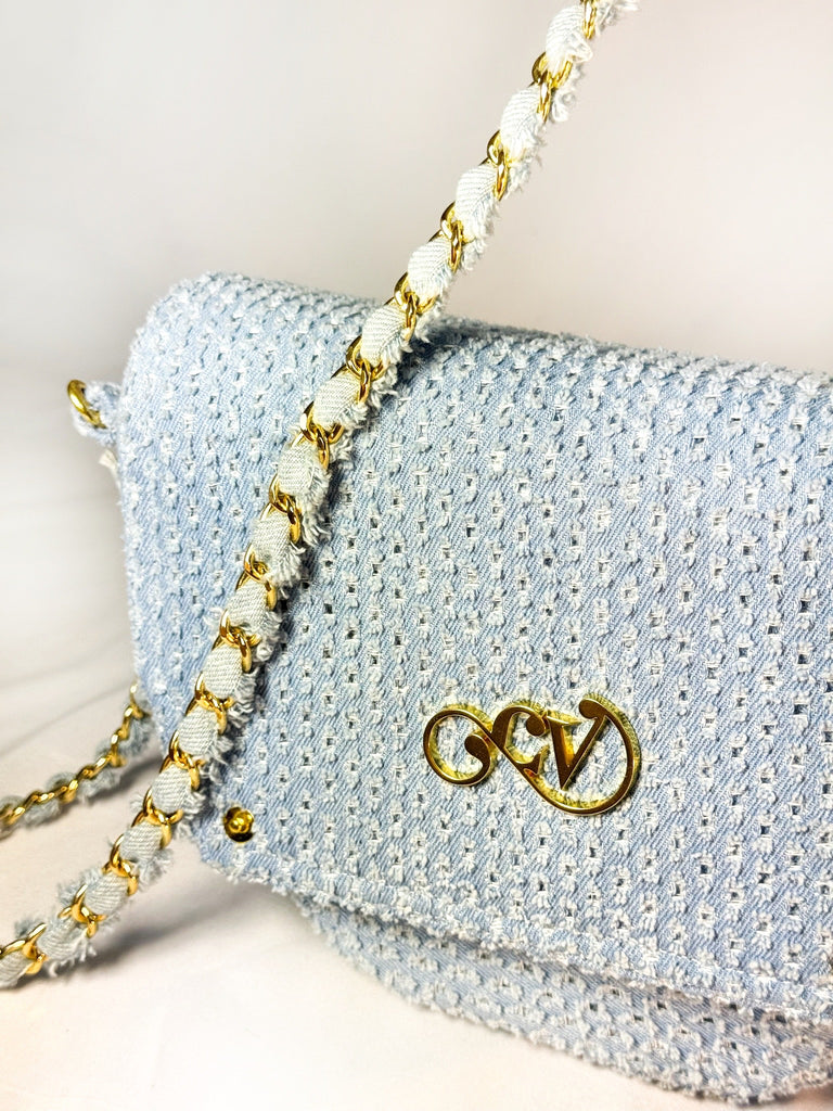 Our Denim Diet Collection just keeps getting better and better. Meet the Jojo 2.0 Jammer, your perfect on-the-go companion. This handcrafted mini bag seamlessly blends luxury and practicality, making it an essential for any wardrobe now has an angled bottom for updated style.